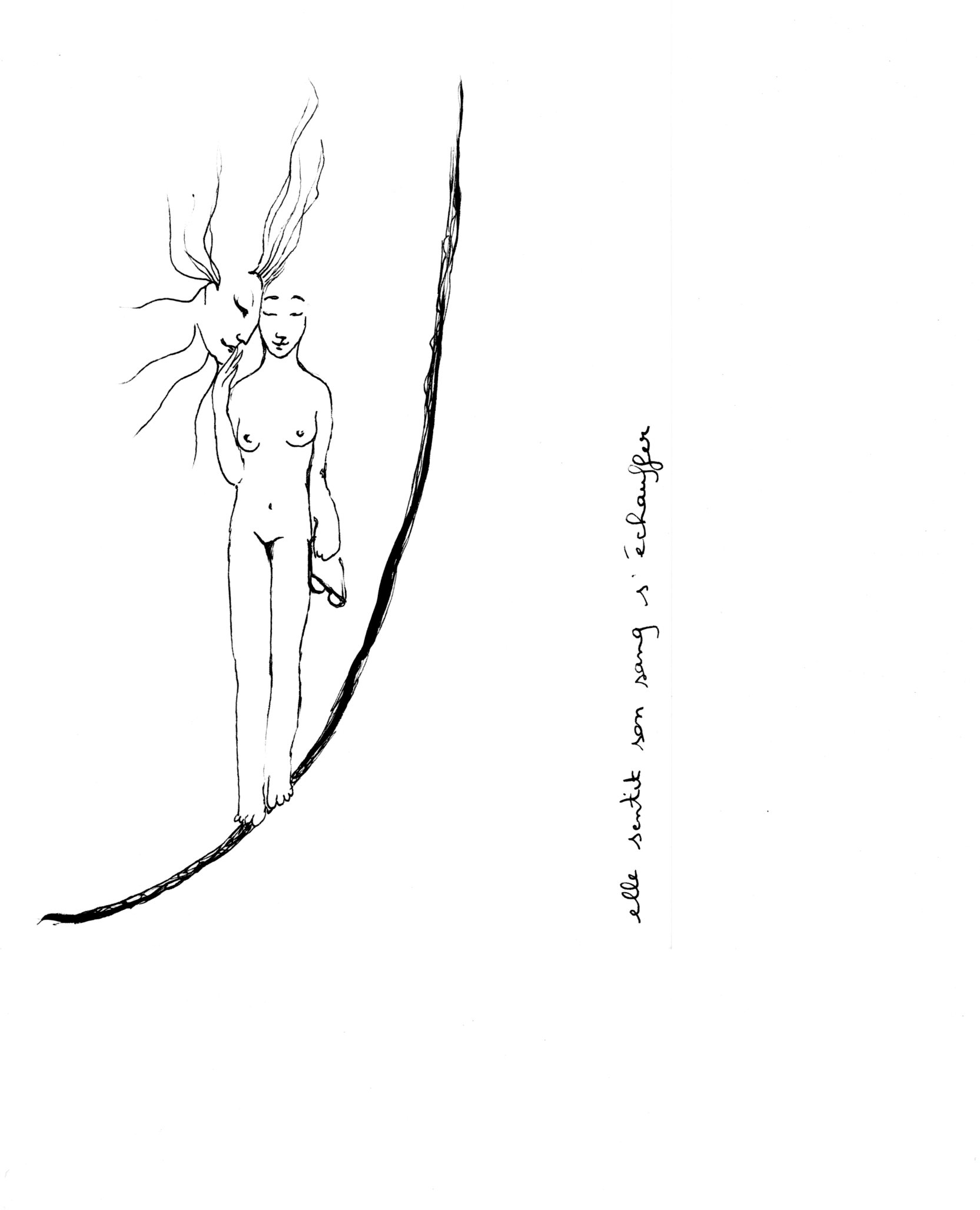 cette illusion de vide trouble la vue de ceux qui tant cherchèrent l’équilibreTagué :art, équilibre, dessin, dessin rencontre, Kajan, sur un fil