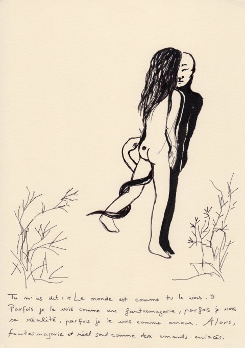 dessin rencontre réalisé à partir de deux cartes et d’une phrase de Krishnamurti…