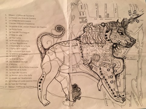 la bête est apparue pendant la balade dans Avallon … sur le plan de l’office du tourisme … inopinément …