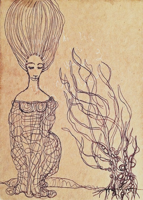 une fois de plus échappée … envolée de la soirée … mon hôte est resté bouche bée … tout ça à cause du marché du lard … mes cheveux bien dressés ont libéré mes idées … noires ou bleues comme l’encre de mon stylo bille courant sur le carton … sauvée