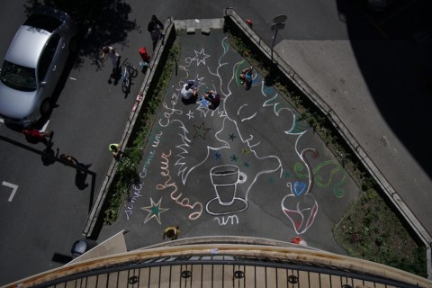 dessiné en-bas de chez moi samedi 27 mai devant la boulangerie portugaise où je vais boire mon petit café … les belles images sont de Luis Henkes (c) … merci à Mena et à tous ceux qui ont apporté leurs coups de pinceau …