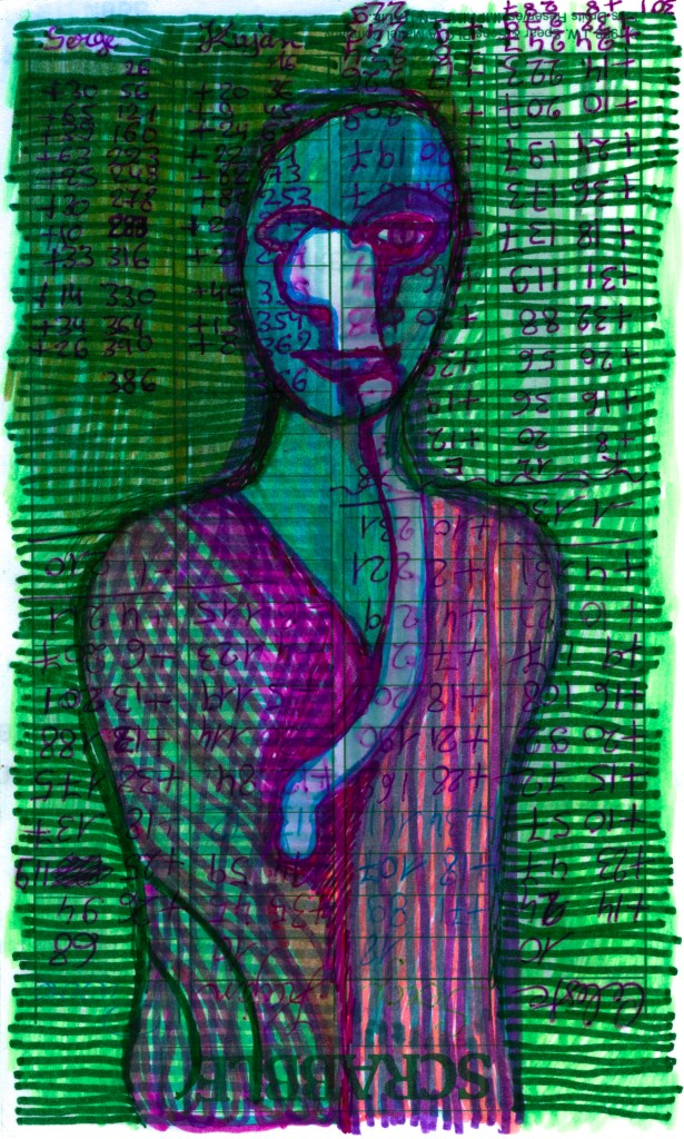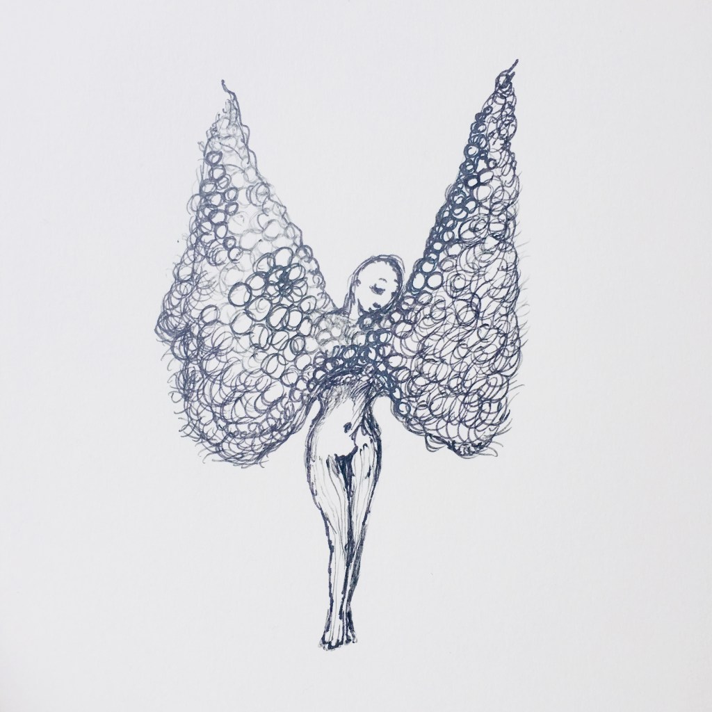 apparition à l’arbre … acrylique et stylo sur sachet de boulangerie