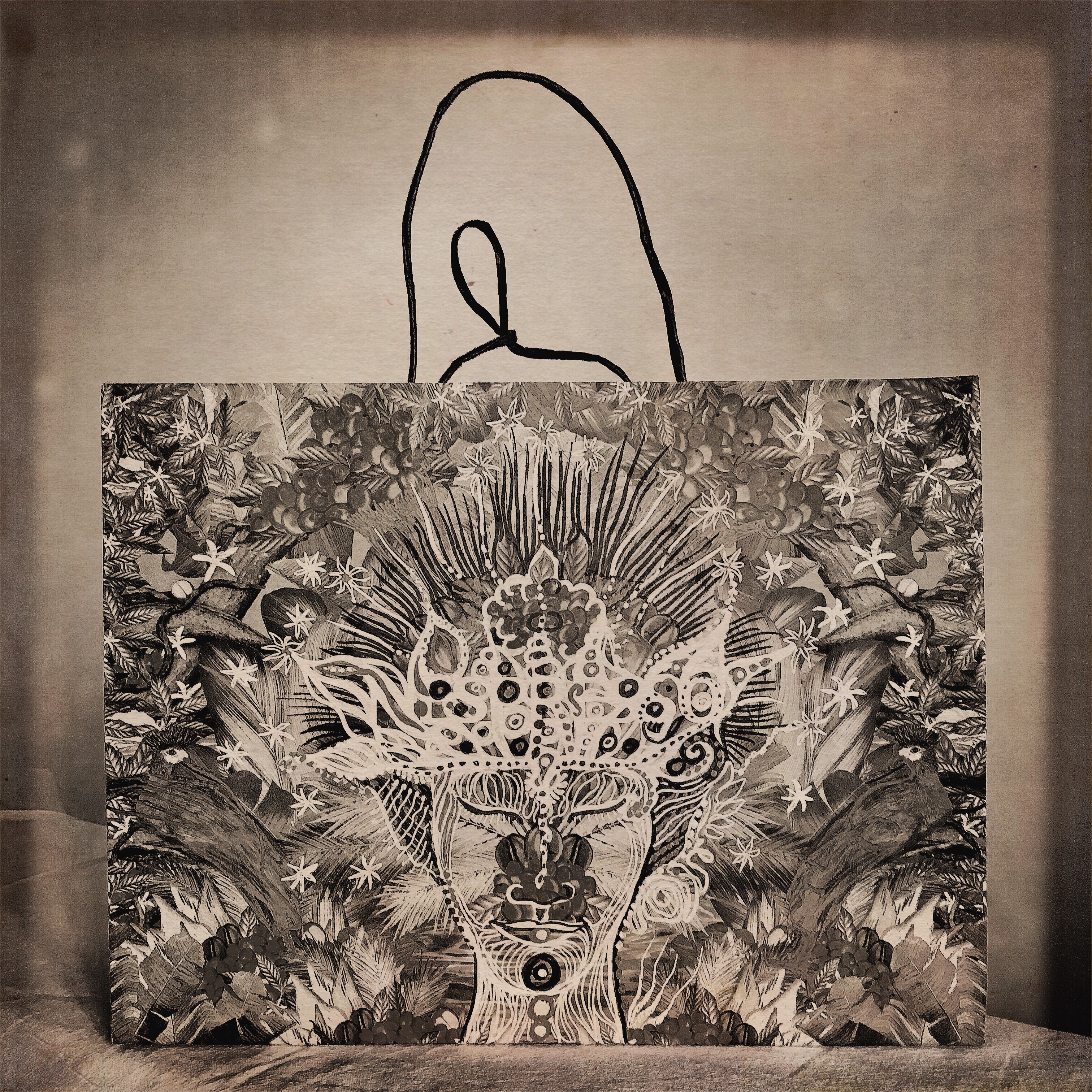 Descendant par l’ombre et la moire à ton noir