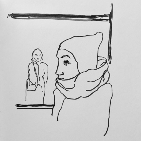 dessiné dans le métro le 21 janvier avant et après le travail, du temps où je travaillais encore, du temps où j’espérais parler à quelqu’un … mais il fallait bien que je commence à m’entendre avec moi-même, que je m’écoute …