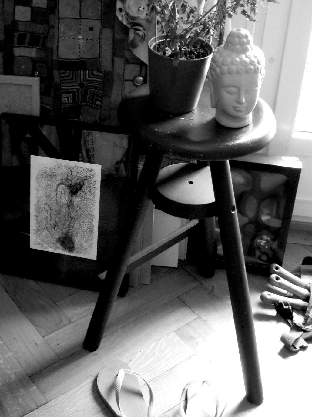 Mon atelier de Renens, rue de la Mèbre 1, lieu où mon travail a trouvé de nouvelles racines… et l’appartement transformé en une sorte de galerie… revoir son intérieur avec la complicité de Sofi Eicher…