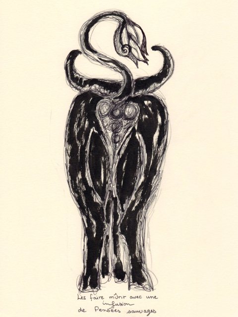 au marché il y a peu… entre deux averses… pour une voyageuse en transit qui a tiré deux cartes et une phrase au hasard… le dessin est apparu…