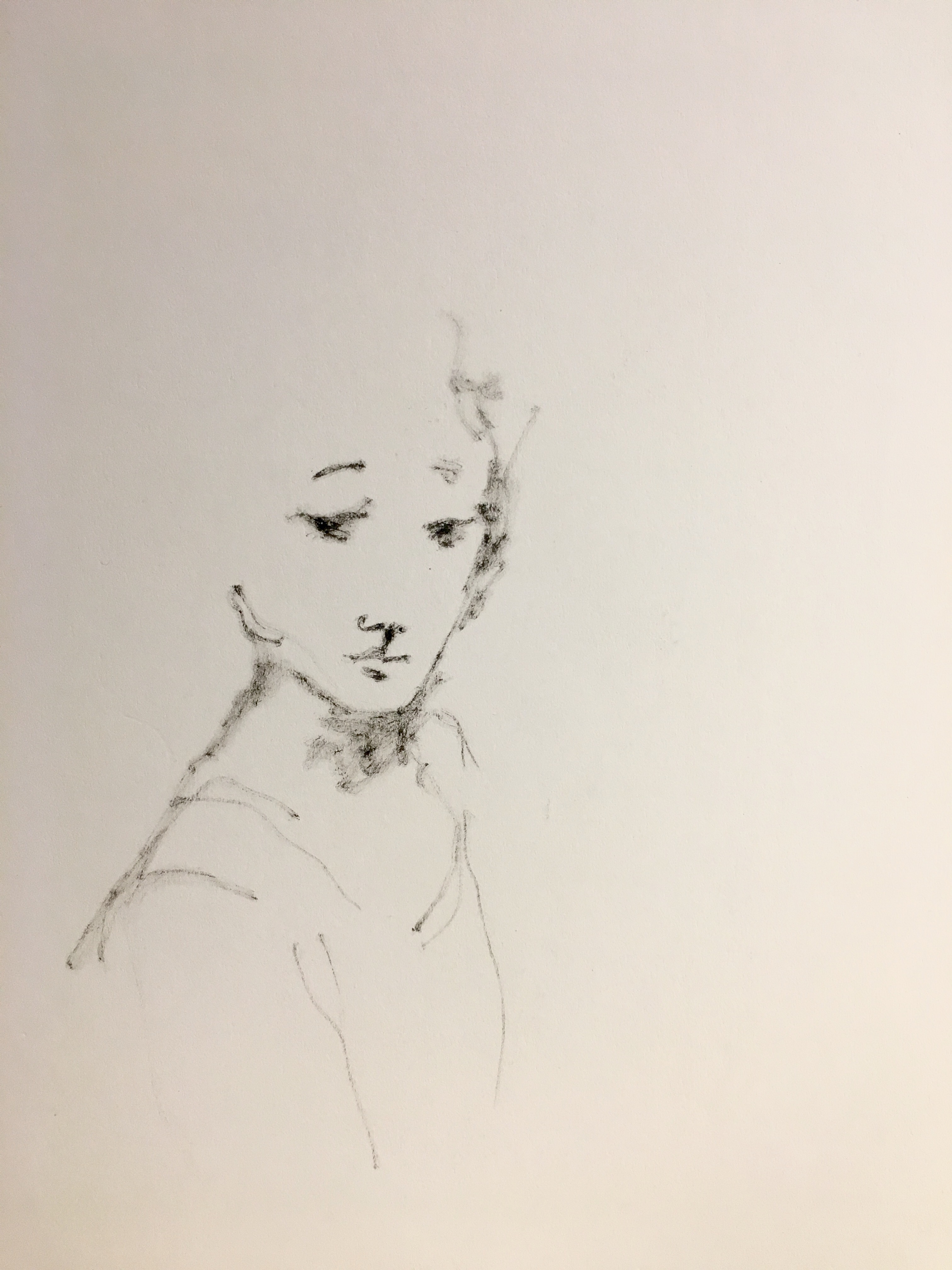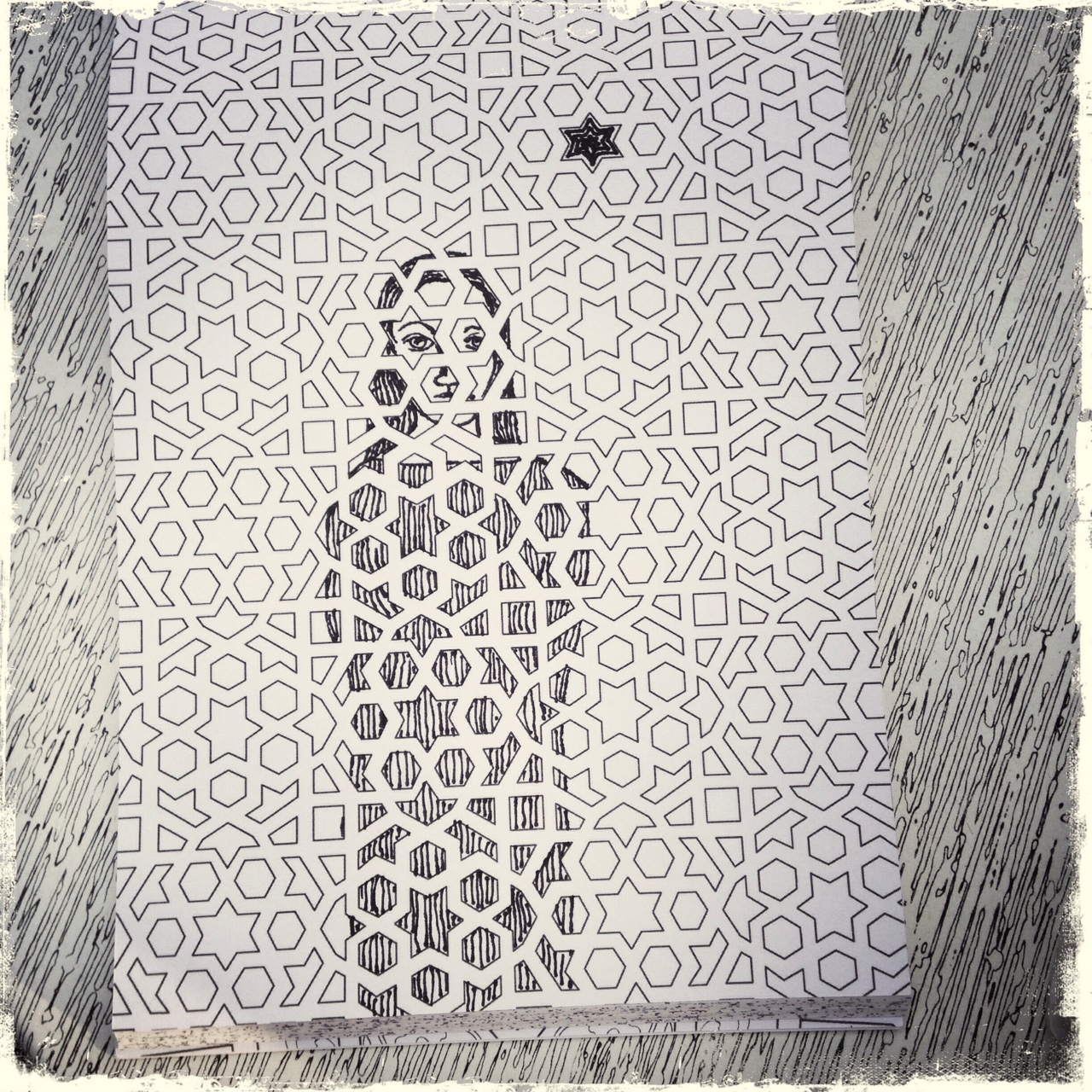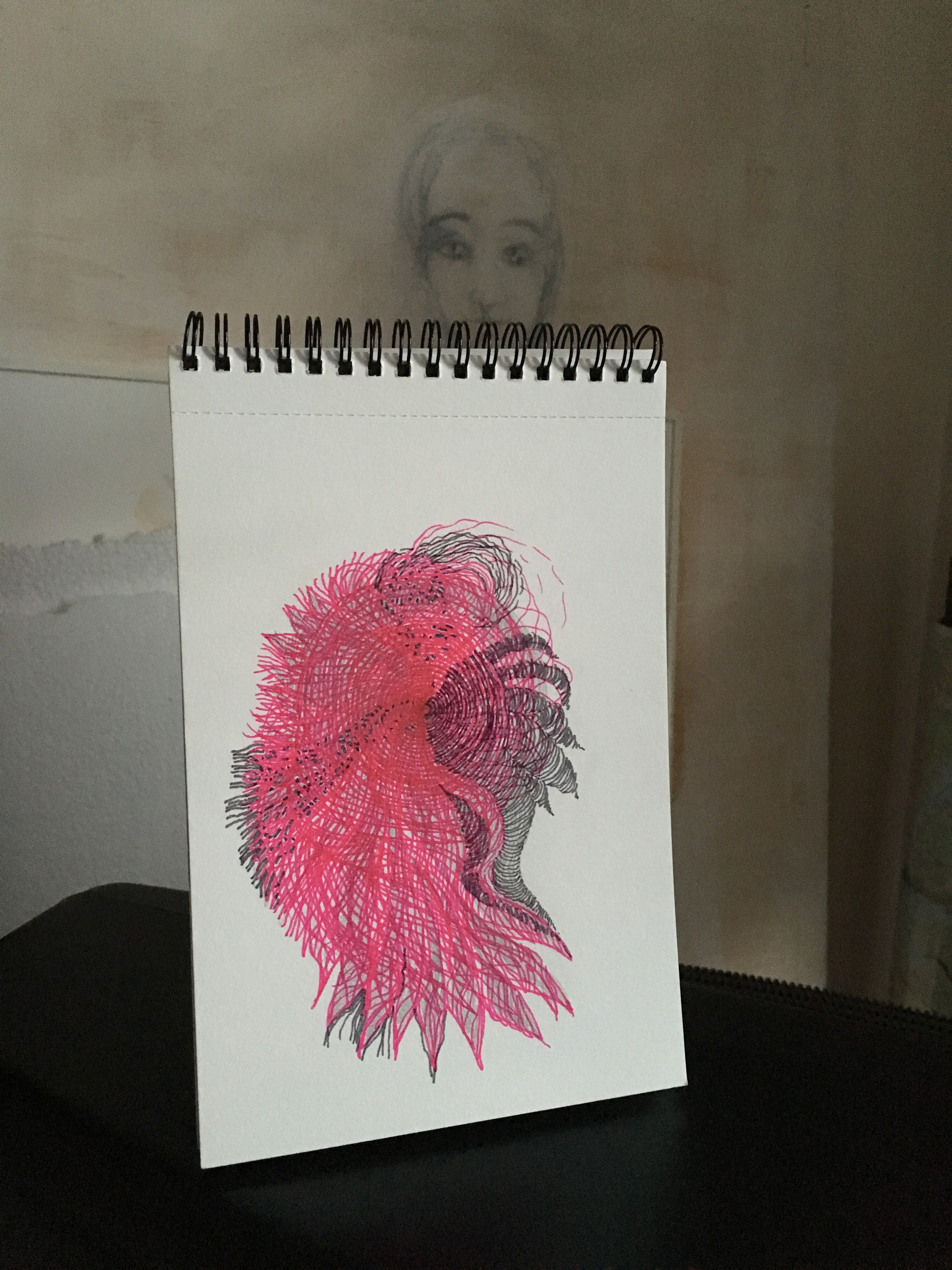 cachée et pourtant visible… lointaine et proche à la fois… multiple et une en même temps… comme cela résonne avec mon présent… ce dessin improvisé dans un cahier de coloriage…