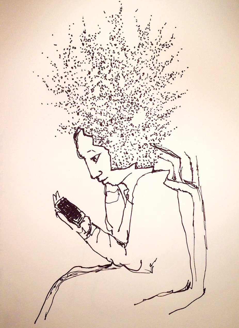 quelques traits vite faits sur ma banquette de métro… quelque part entre la gare et le terminus… est-ce si différent d’être là à dessiner plutôt qu’à m’hypnotiser aux ondes virtuelles de mon téléphone dit intelligent ?